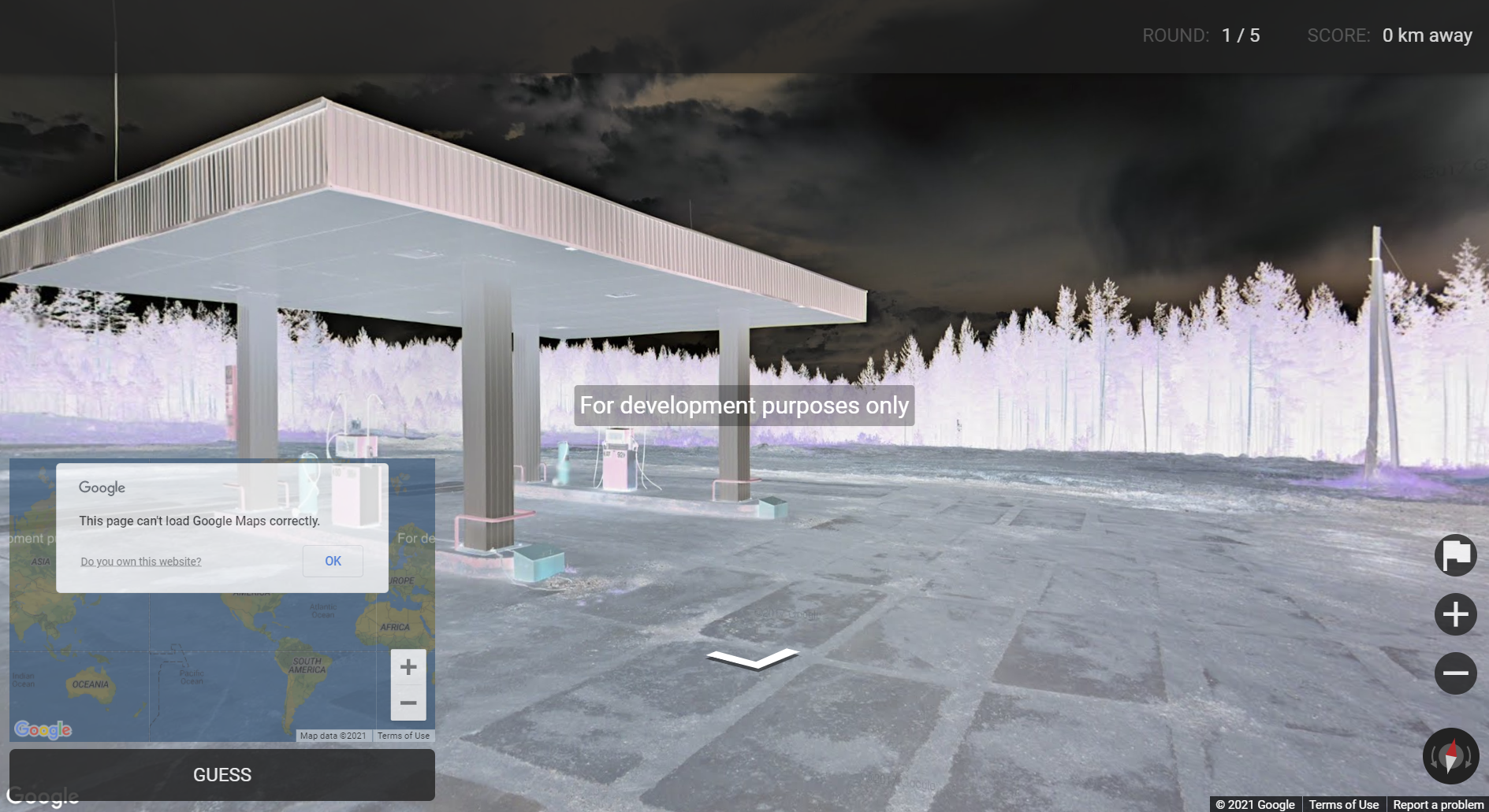 If the map color is inverted or doesn't load properly, it means the quotas has been exceeded on the day. It will reset at midnight Pacific Time. Sorry for inconvenience. However, this game is open source so you can build your own game server and play games unlimitedly. If you are interesed in building your own game server, please read the instruction on my